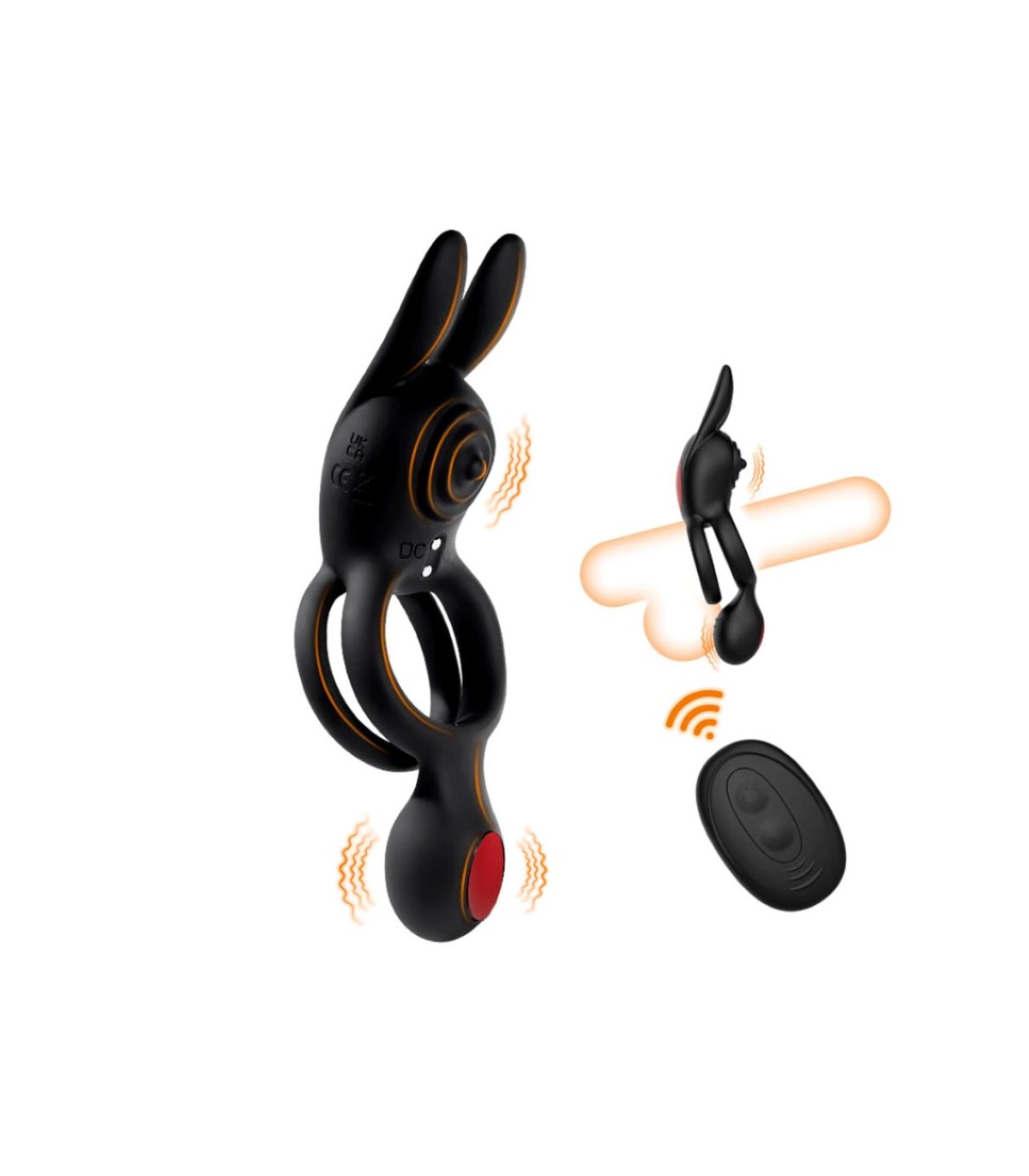 Doble anillo vibrador diseñado para potenciar el placer de ambos. Se adapta perfectamente al pene y testículos, intensificando la erección y prolongando el encuentro mientras estimula el clítoris con cada movimiento. Incluye control remoto.