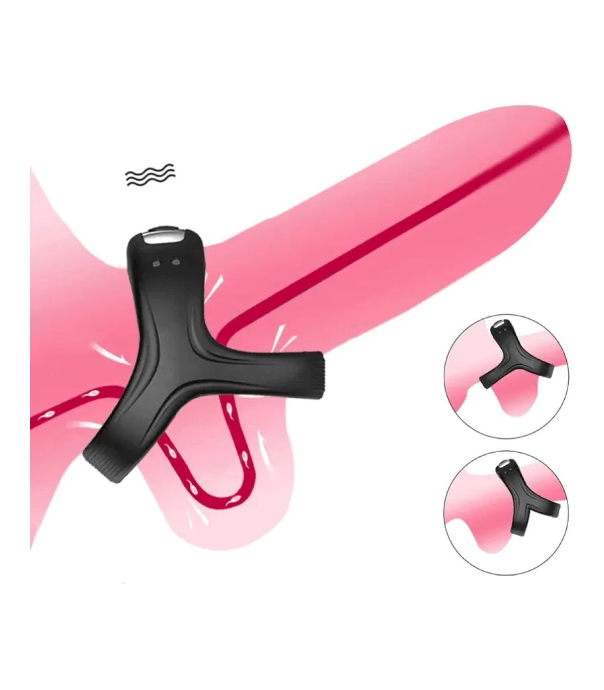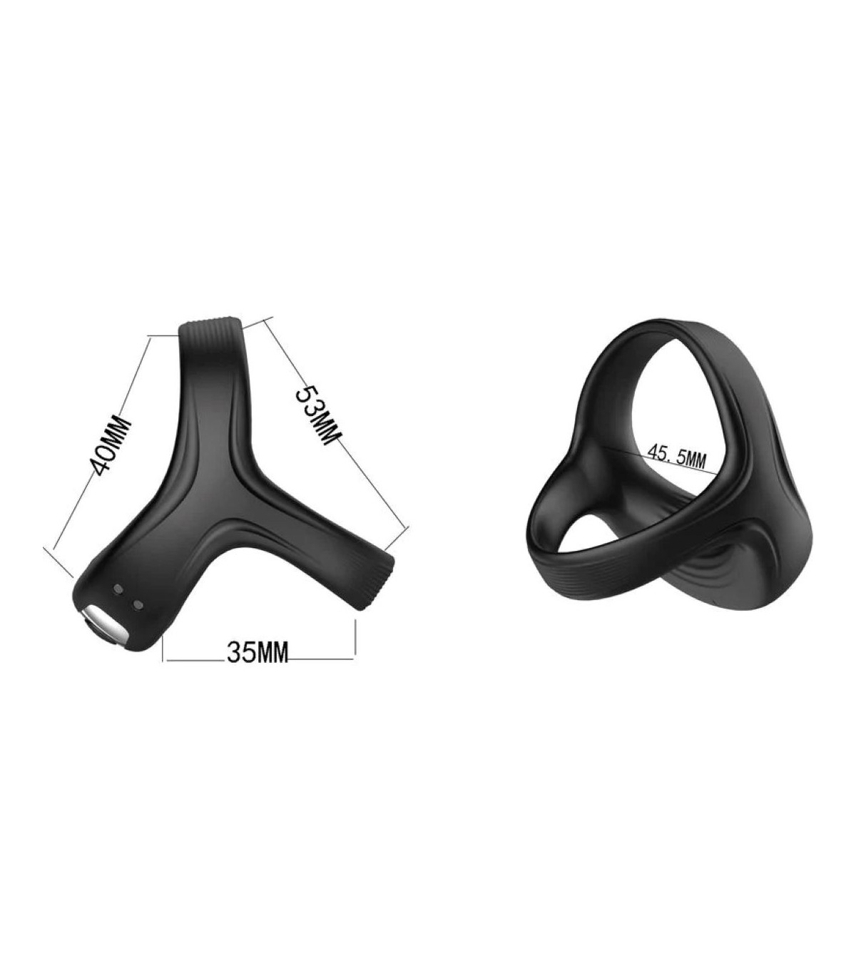 Doble anillo vibrador diseñado para potenciar el placer de ambos. Se adapta perfectamente al pene y testículos, intensificando la erección y prolongando el encuentro mientras estimula el clítoris con cada movimiento. Ofrece 10 ritmos de vibración.