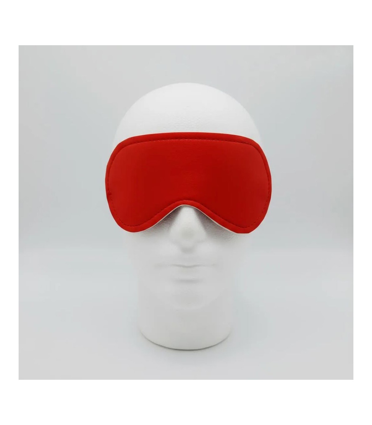 Antifaz de cuero ecológico con tira de elástico para su sostén.