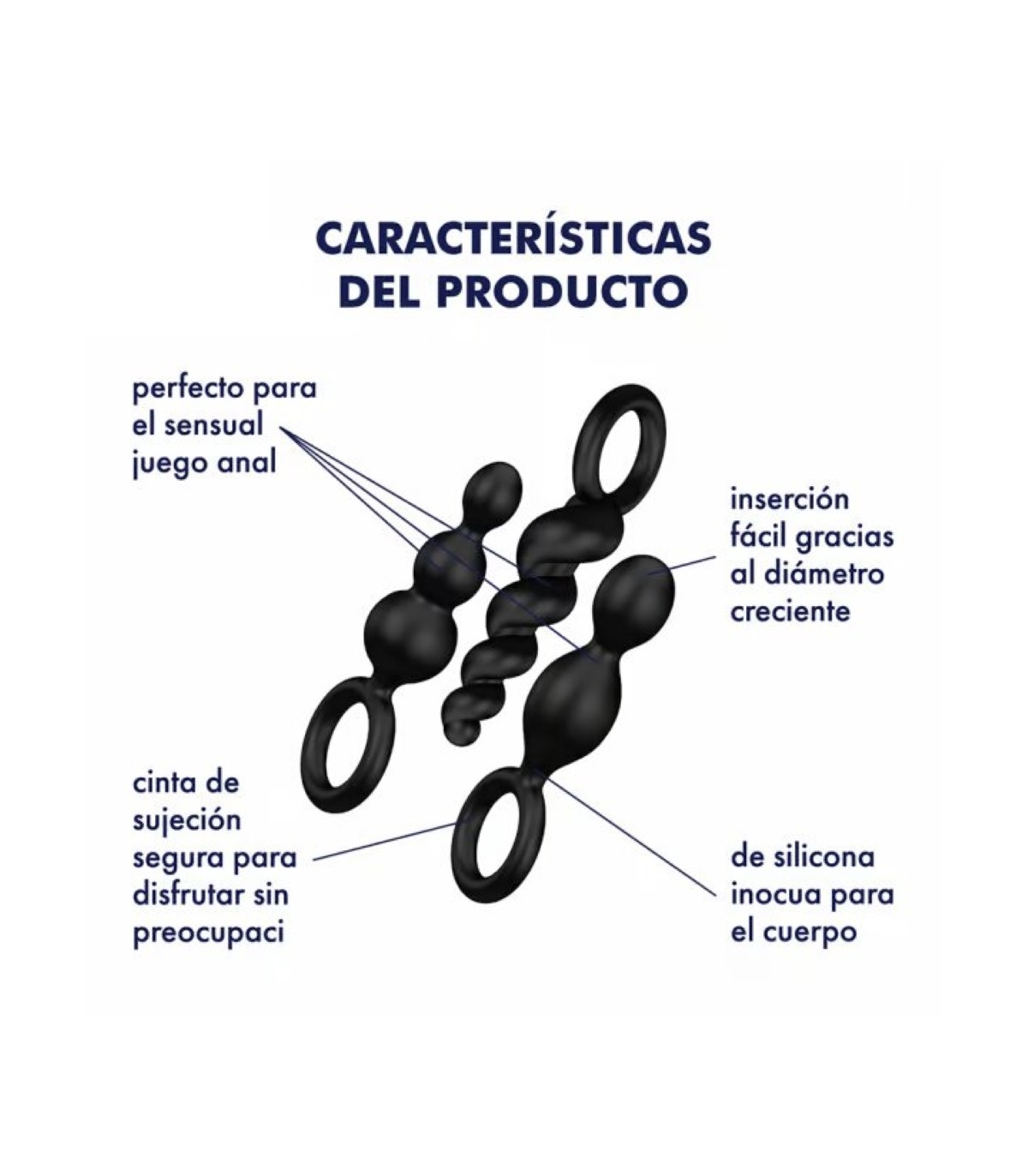 Con 3 formas diferentes, el juego Booty Call de Satisfyer es ideal como entrenamiento para los que se inician en el sexo anal.