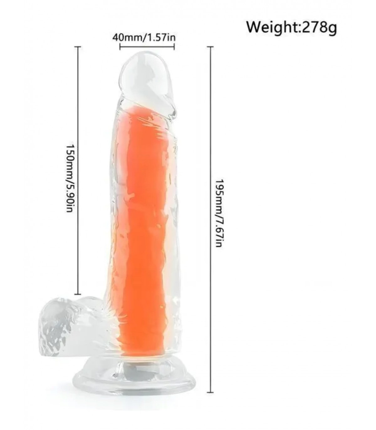 Fabricado con TPE de alta calidad es seguro y cómodo de usar gracias a su material inodoro y de doble densidad. Su diseño incluye una capa exterior transparente y un núcleo que brilla en la oscuridad, ofreciendo una textura realista y un atractivo visual impresionante.