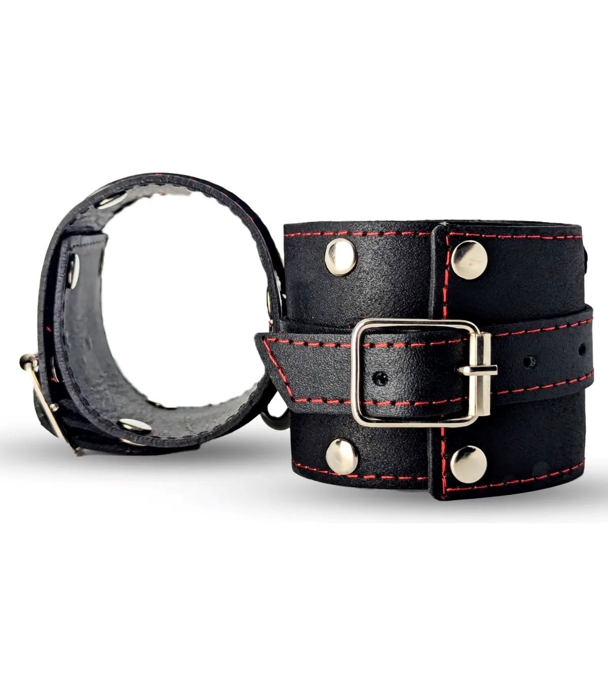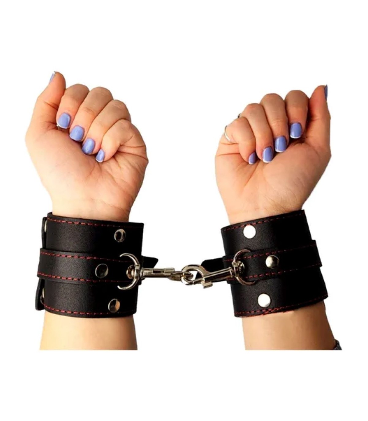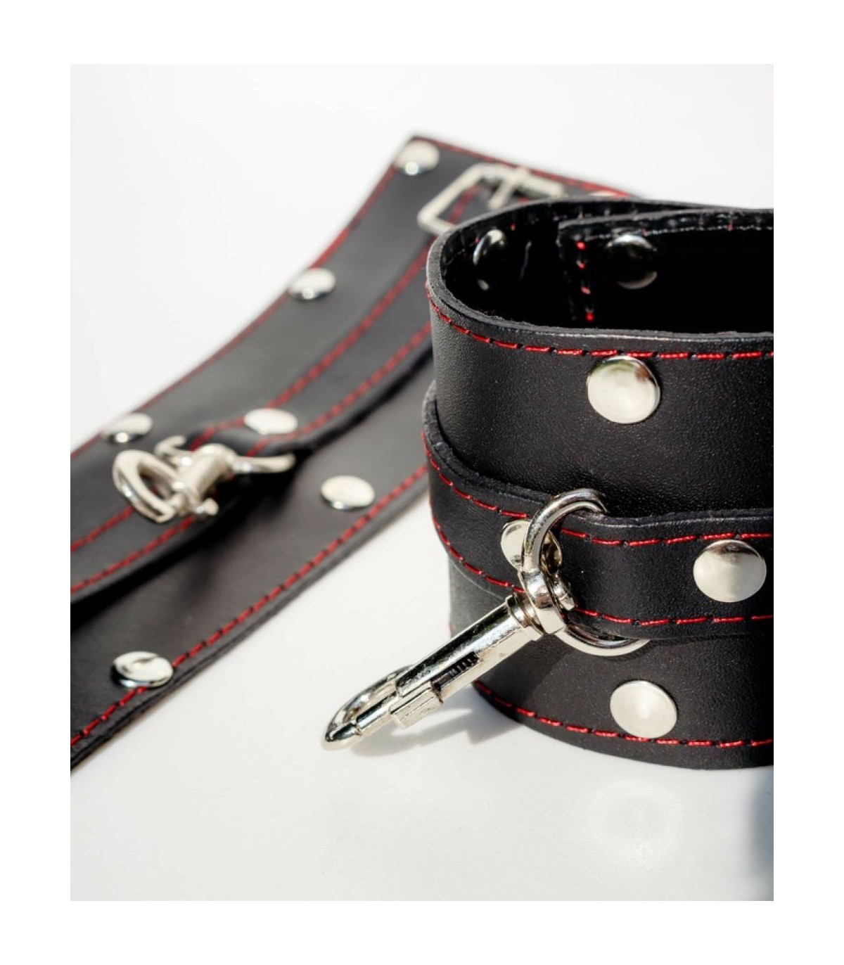Esposas de cuero regulables y con gancho mosquetón ideal para rápida liberación o para agregarle cadenas.