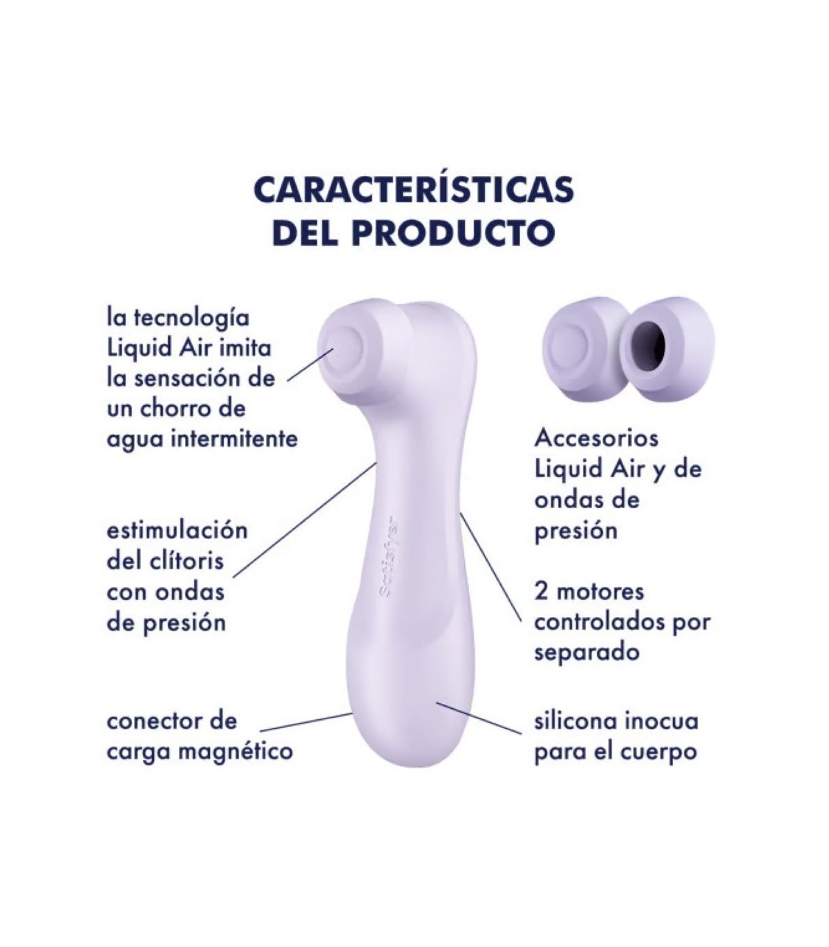 Sumérgete en 11 programas de ondas de presión, que puedes combinar con 12 velocidades de vibración. Con sus dos motores y la innovadora tecnología Liquid Air: el capuchón adicional, con su fina y super suave membrana de silicona, crea intensas ondas que imitan una oleada de agua pulsante, viene con dos accesorios para que tengas las dos opciones.