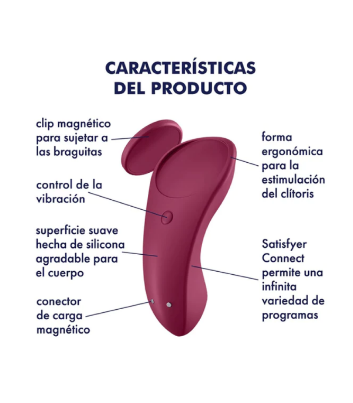 Vibrador para parejas: 7,5 cm de largo insertable x 3,5 cm de ancho.