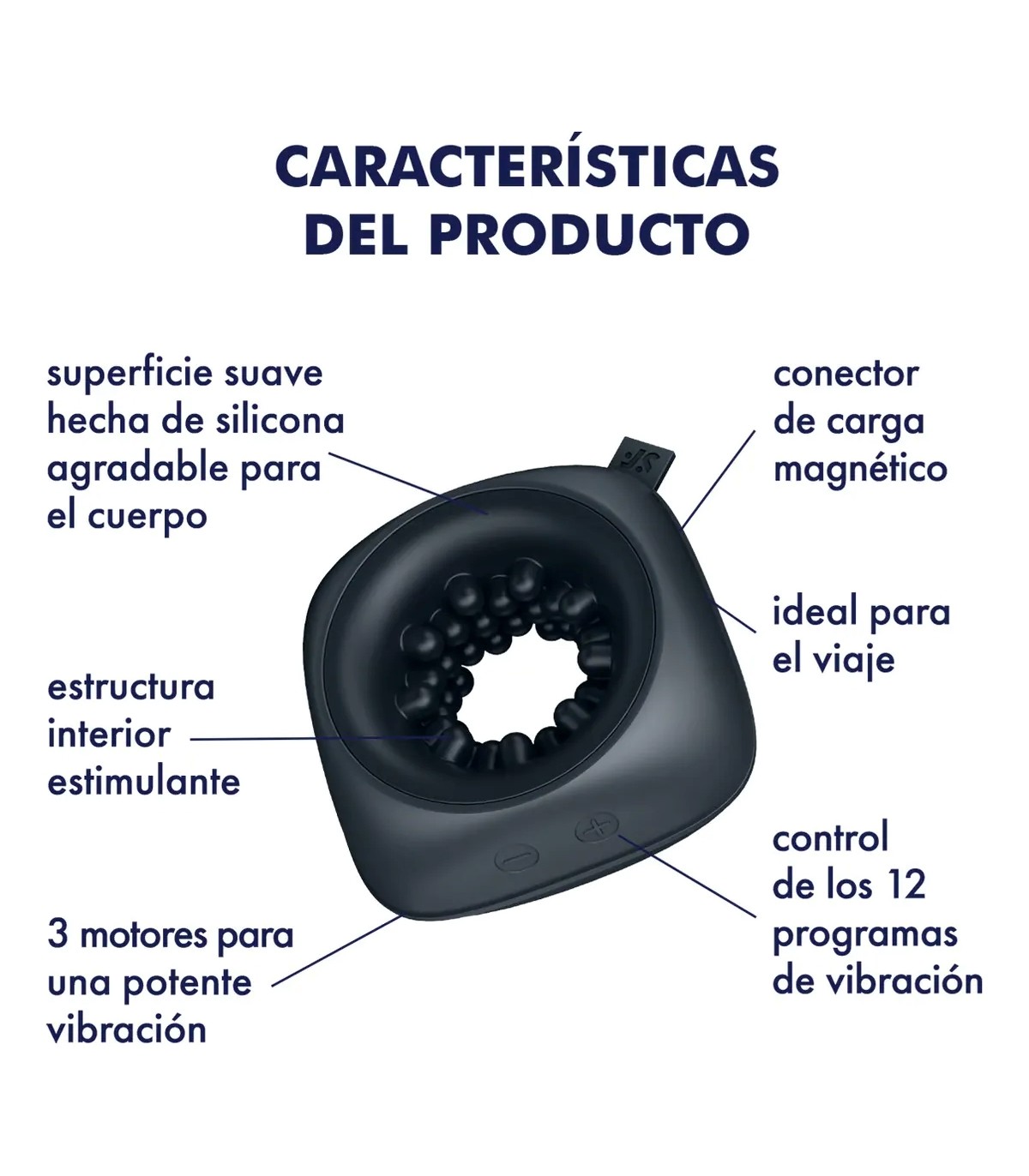 Tres potentes motores hacen que este anillo masturbador vibre y te de placer a ti y a tu pareja con 12 programas variados, desde suaves hasta intensos.
