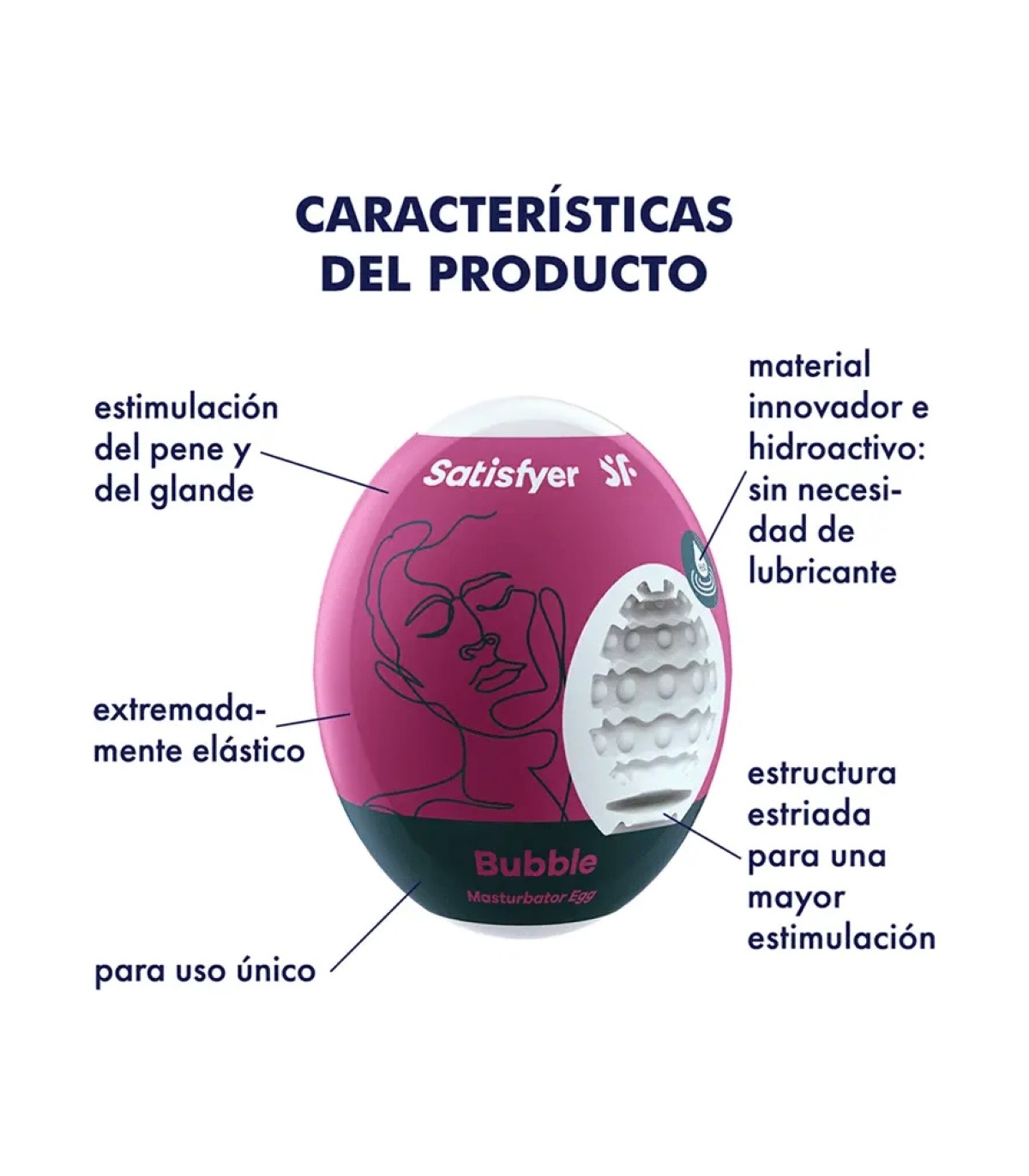 Con una textura similar a la piel, este huevo da placer tanto al eje del pene como a la punta. Las distintas formas internas sorprenden y deleitan con sensaciones matizadas. Y gracias a la innovadora piel cibernética, no es necesario agregar lubricante.