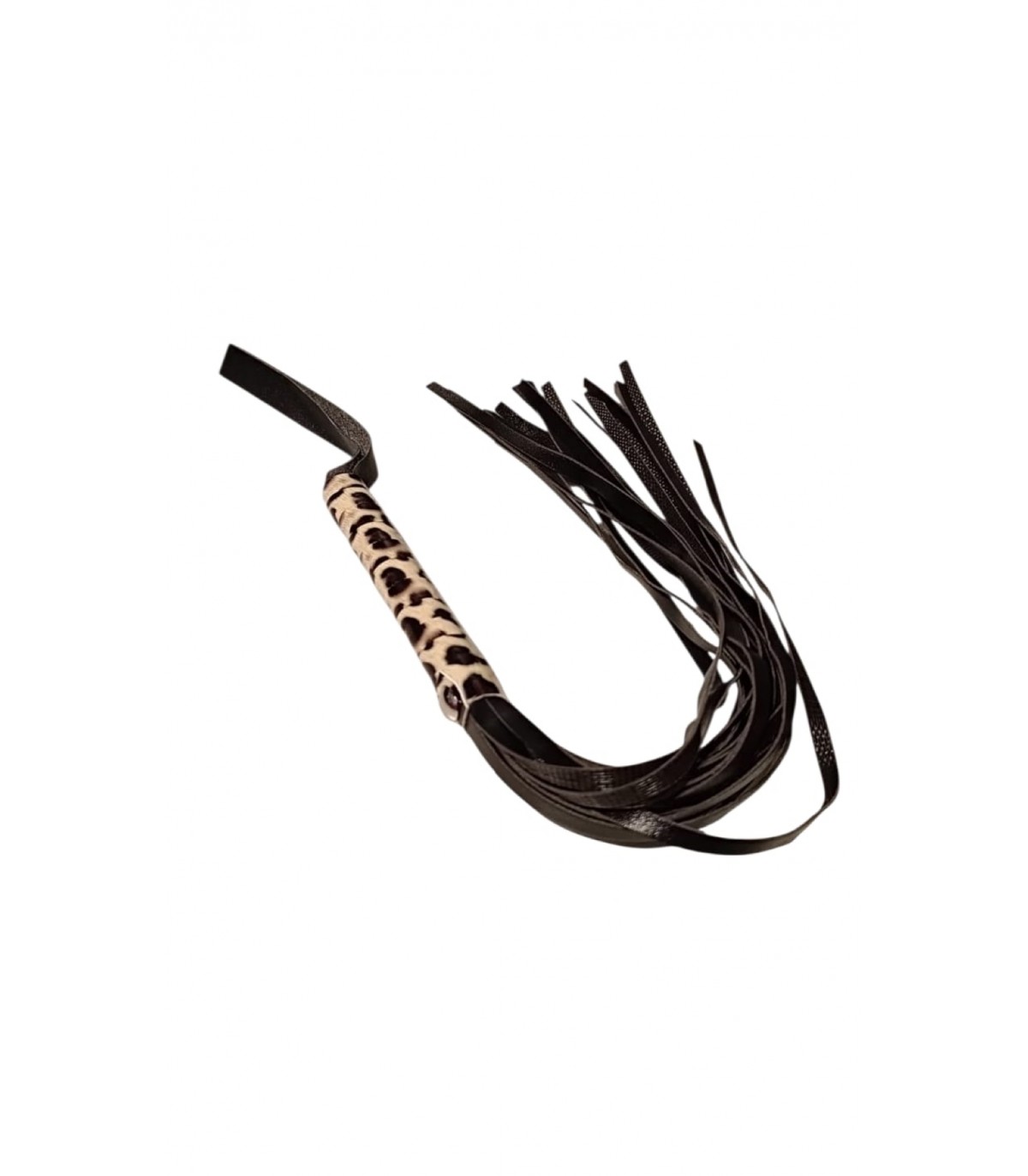 Confeccionado de una estampa de leopardo , de eco-cuero y elegante con el cual lograrás azotes fuertes para un castigo intenso. Este látigo es indispensable para cualquier colección BDSM o de lencería sadomasoquista.