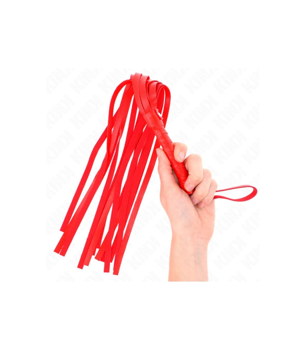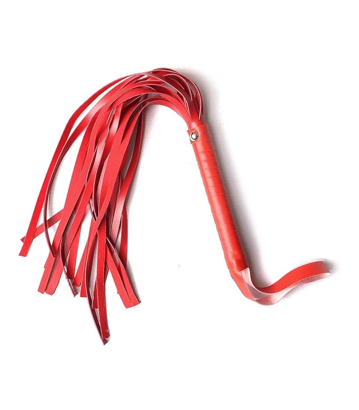 Fabricado con cuero ecológico rojo. Con correa para sujetar y mango resistente.