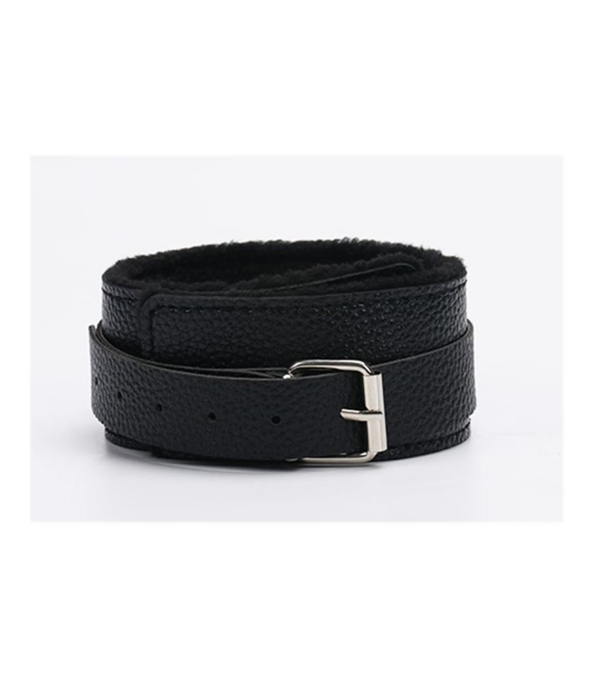 -Collar forrado con peluche con correa de eco-cuero.