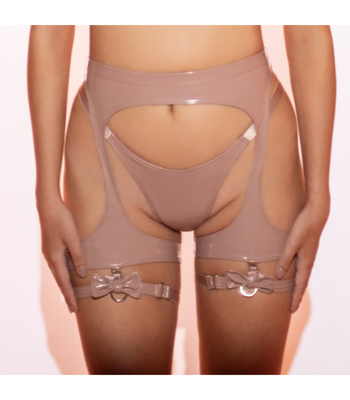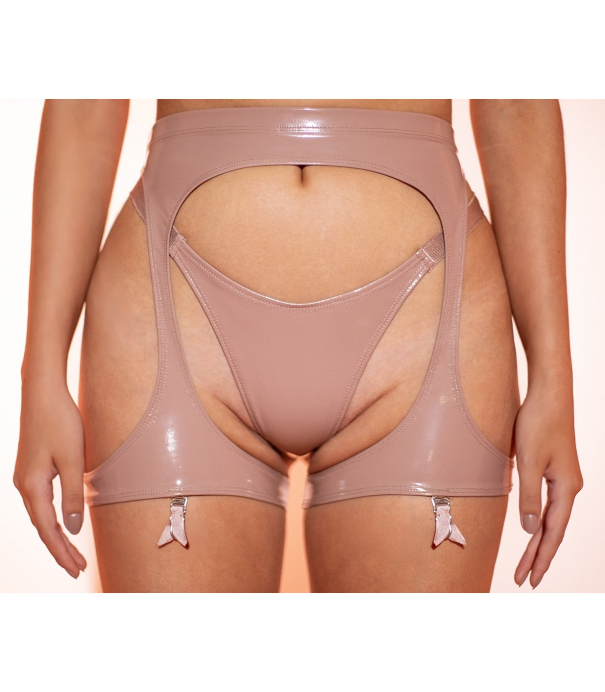 Ganchos de portaligas desmontables. Lo que permite usarlo de dos maneras: Con ligas o medias para un look clasico o sin ganchos, como prenda independiente, aportando un efecto visual fuerte y moderno.