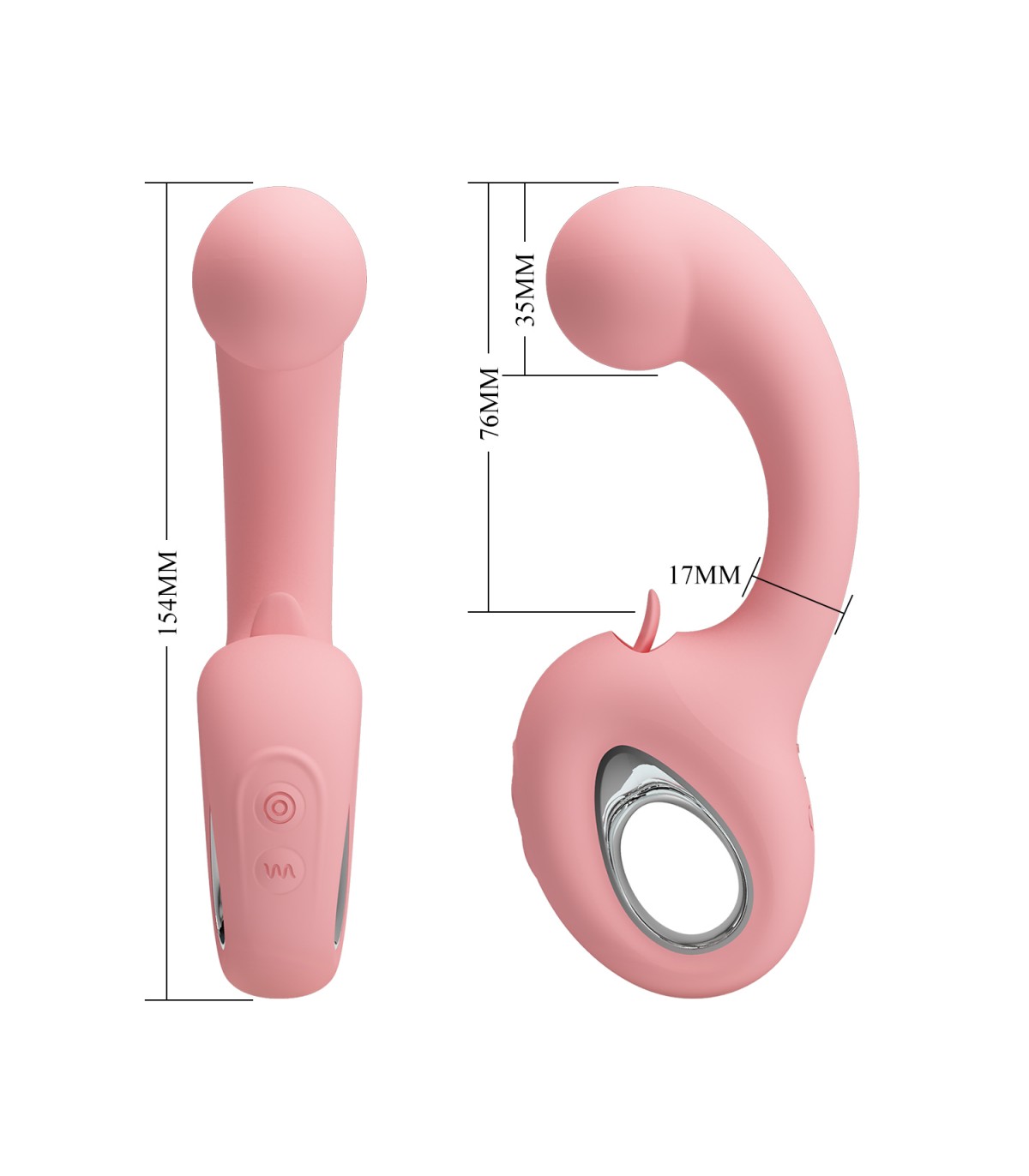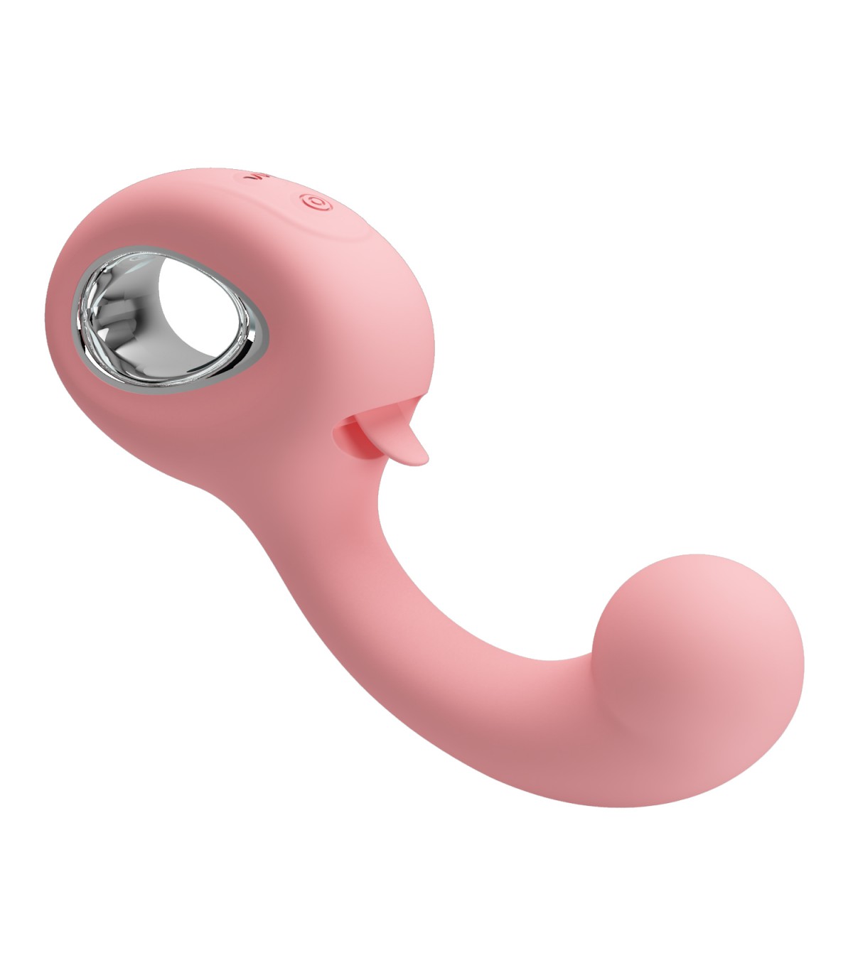 Diseñado para ofrecerte doble estimulación, cuenta con 10 funciones de vibración y 5 de sexo oral. La pequeña lengua estimulará a la perfección el clítoris, mientras que el eje te proporcionará potentes vibraciones para punto G.