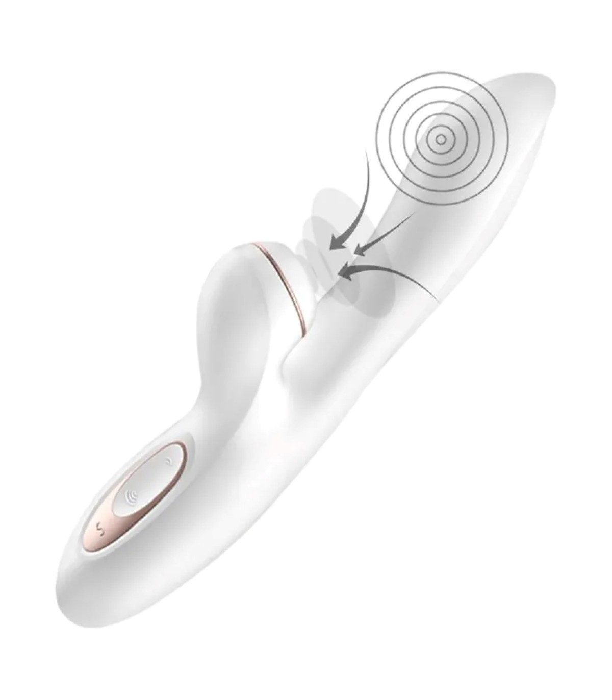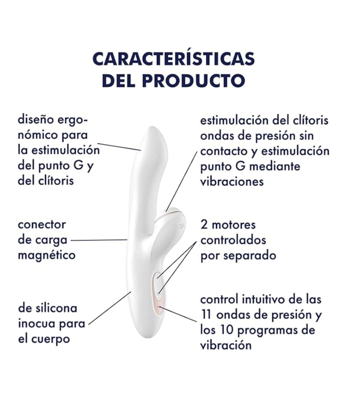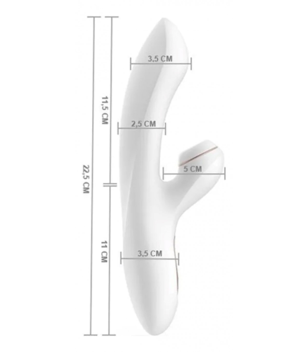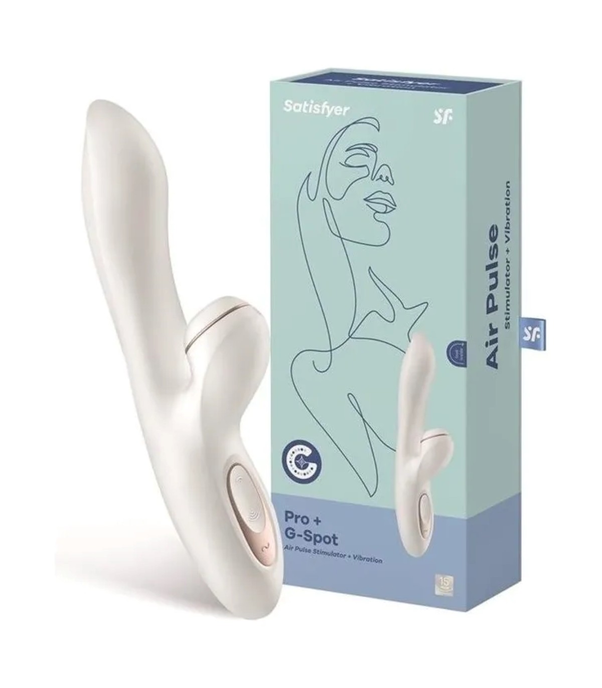 Pro + G-Spot se ha desarrollado de una forma elegante para ofrecer una doble estimulación del punto G y del clítoris. El mango vibratorio flexible se adapta hábilmente a las curvas y busca tu punto G con la punta voluminosa, mientras que el suave accesorio de silicona colocado sobre tu clítoris te estimula con las hormigueantes ondas de presión de la tecnología Air Pulse.